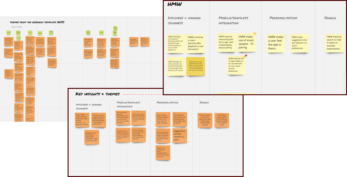 We used affinity mapping to identify themes, looked at previous research and worked with product to identify the theme we would be focusing our efforts.